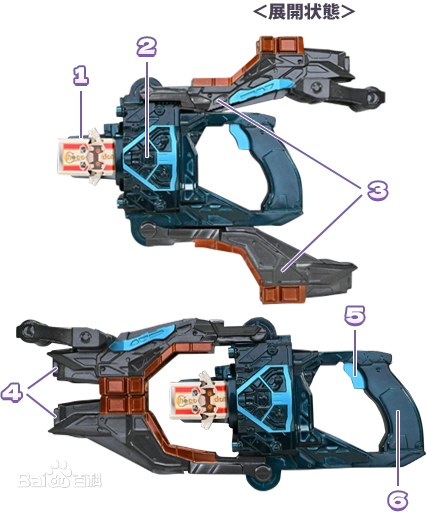 瓦伦破坏枪的握柄:通过握住此处的假面骑士瓦伦的手,会向其传达以饱藏能力为主的各种情报。